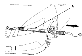 41. Remove the steering gearbox (A) through the fenderwell opening on the driver's side.