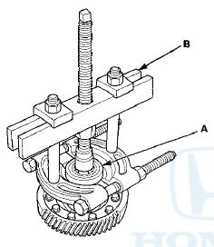 2. Remove the carrier bearings (A) with a commercially available bearing puller (B).