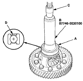 NOTE: Place the seal part (D) of the bearing towards the outside of the differential, then install it.