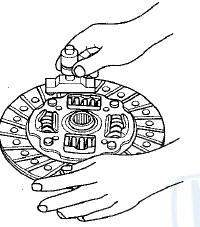 10. Measure the clutch disc thickness. If the measurement is less than the service limit, replace the clutch disc.