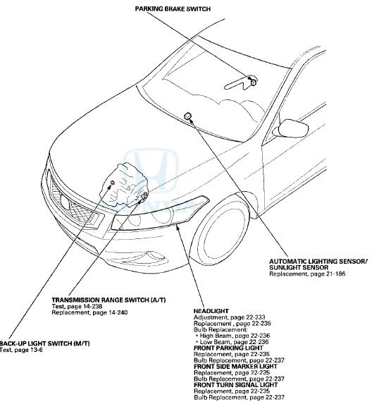 Eighth generation (2008–2012) / Honda Accord MK8 2008-2012 Service Manual / Body Electrical / Exterior Lights / Component Location Index
