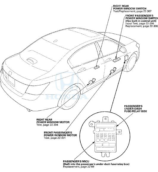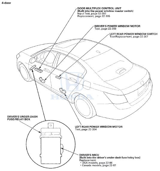 Eighth generation (2008–2012) / Honda Accord MK8 2008-2012 Service Manual / Body Electrical / Power Windows / Component Location Index
