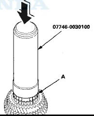 2. Slide 3rd gear (A) over the countershaft, and press it in place using the 40 mm driver and a press.