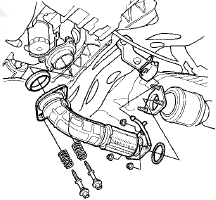 28. Drain the transmission fluid: - Manual transmission (see page 13-5) - Automatic transmission (see page 14-192) 29. Remove exhaust pipe A.