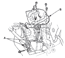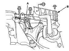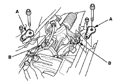 NOTE: Do not remove the TORX bolt (B) from the upper transmission mount. If the TORX bolt is removed, the upper transmission mount must be replaced as an assembly.