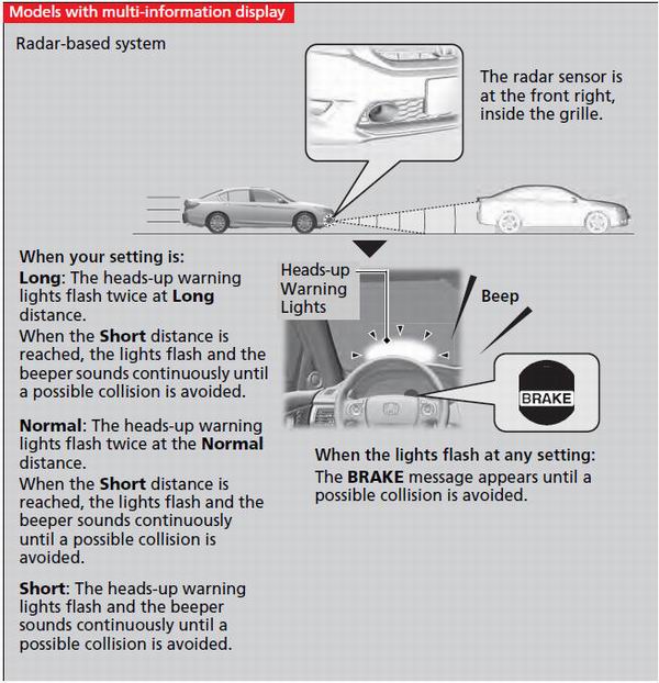 The system may give warnings of potential collisions when your vehicle speed is above 10 mph (15 km/h).