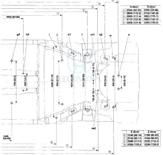 m2 Rear floor cross-member locating hole 015 (0.59) left side