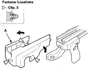 6. Slide the front seat frame forward fully, detach the clips, then remove the rear outer seat weight sensor cover (A) and the rear inner seat weight sensor cover (B) from the back of both seat tracks.