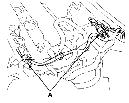 6. To prevent damage and keep foreign matter out, cover the disconnected connector and line ends with plastic bags (A).