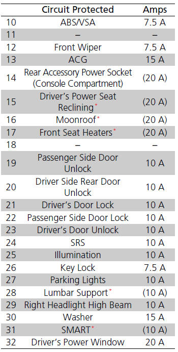 Honda Accord: Fuse Locations
