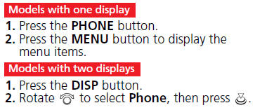 Honda Accord: HFL Menus