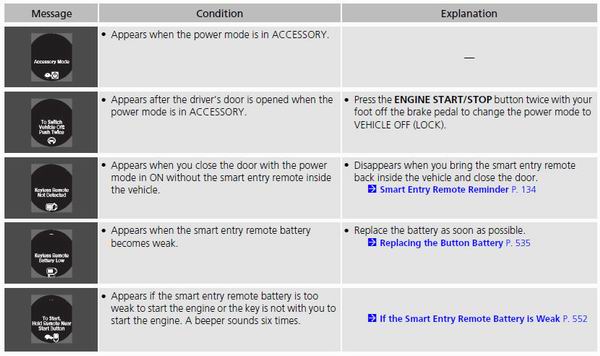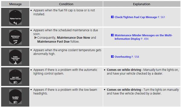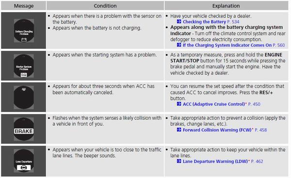 Honda Accord: Multi-Information Display Warning andInformation Messages