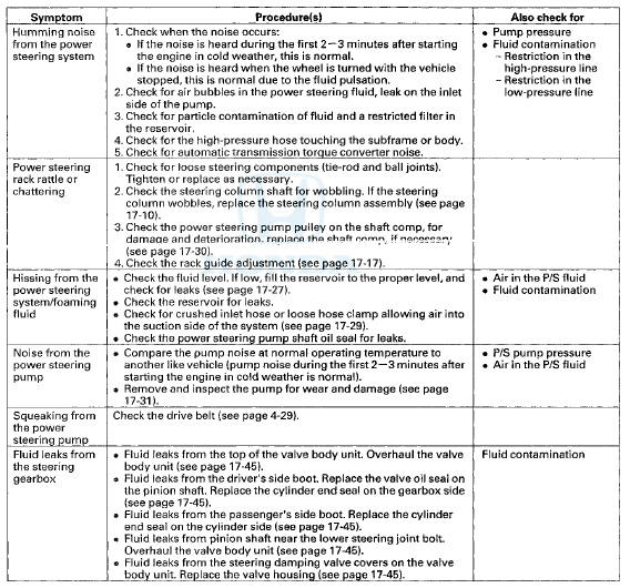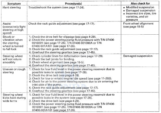 Eighth generation (2008–2012) / Honda Accord MK8 2008-2012 Service Manual / Steering / Hydraulic Power Steering Components / Symptom Troubleshooting Index
