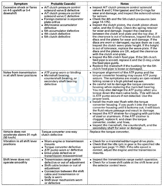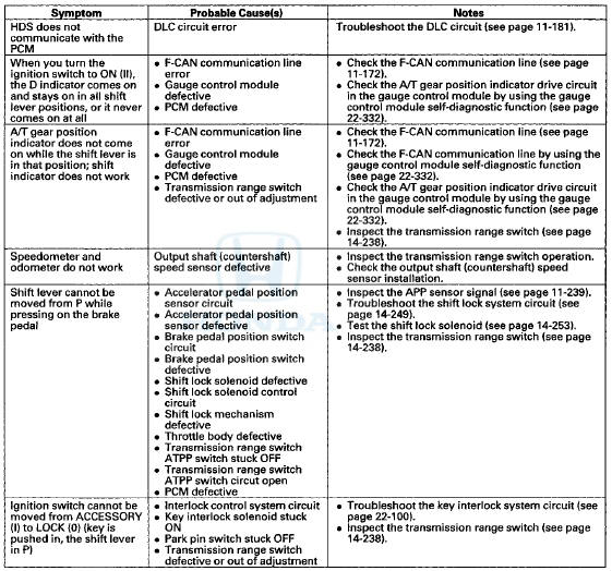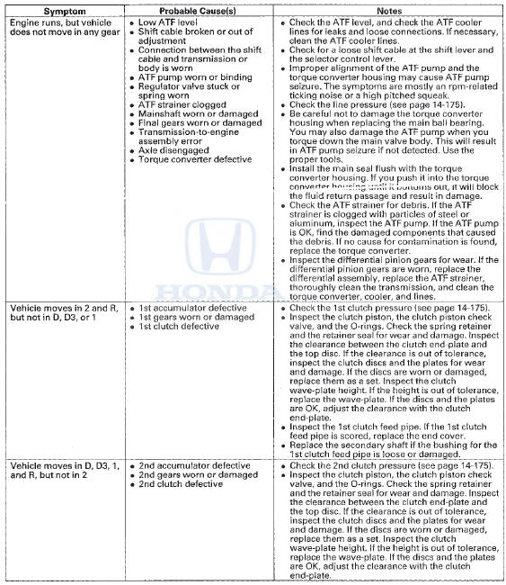 Honda Accord: Symptom Troubleshooting Index