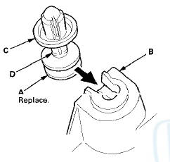 - Any cracks or stress-whitened areas in the clips seating surfaces (D) - Replace any damaged parts with new ones.