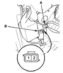 2. Disconnect the 2P connector (A) from the windshield washer motor (B).